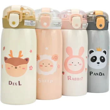 Garrafa Térmica Infantil de Água em Aço Inox 350ml com Canudo – Estampa de Animais
